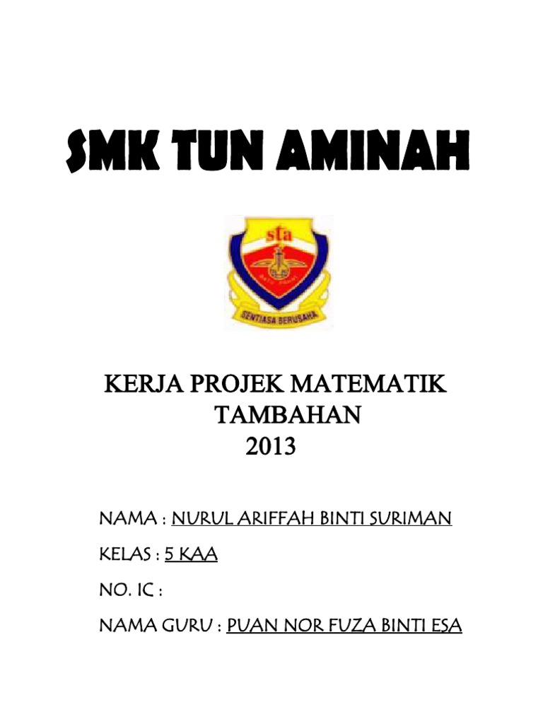 Kerja Projek Matematik Tambahan 2017 from data03.123doks.com Spm matematik tambahan addmath 2017 kertas 1. Kerja projek matematik tambahan 2015.docx. Posted jan 9, 2012, 5:57 am by ramli hamid. Dokumen pelaksanaan kerja projek matematik tambahan (kpmt) 2014. Documents similar to kerja projek matematik tambahan. Pembelajaran berbasis proyek adalah suatu metode pembelajaran yang menggunakan proyek atau kegiatan sebagai media. Pembuatan surat kontrak kerja proyek ternyata tak begitu sulit. Sik (kedah), johor bahru (johor).
